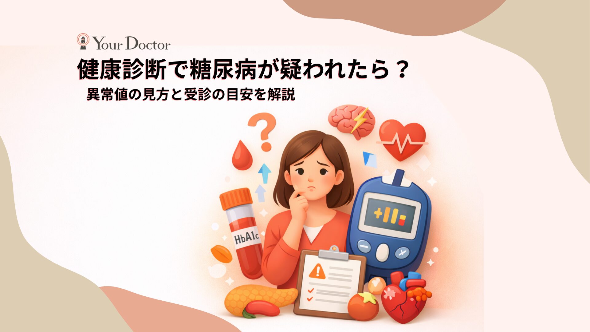 健康診断で血糖値やHbA1cの異常を指摘された場合、症状がなくても注意が必要です。糖尿病は初期の自覚症状が乏しく、健診での異常が早期発見のきっかけになります。