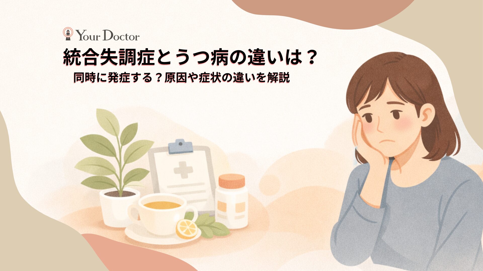 気分の落ち込みを基軸とした心身の不調が現れる点が、幻覚・妄想が主な症状である統合失調症と異なります。一方、うつ病に伴う意欲の低下や感情表現の乏しさは、統合失調症の陰性症状と類似する症状です。