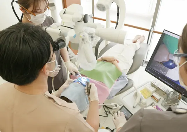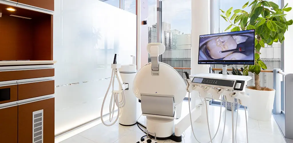 現代の精密根管治療において、マイクロスコープと歯科用CTは、治療精度を飛躍的に高めるために極めて重要な設備と言っても過言ではありません。マイクロスコープを活用すれば、肉眼の最大約20倍以上に拡大して根管内を観察できるため、暗く狭いトンネル内部の汚染やクラック(ひび)、見落とされていた神経管を目視で確認しながら確実な処置が可能となります。