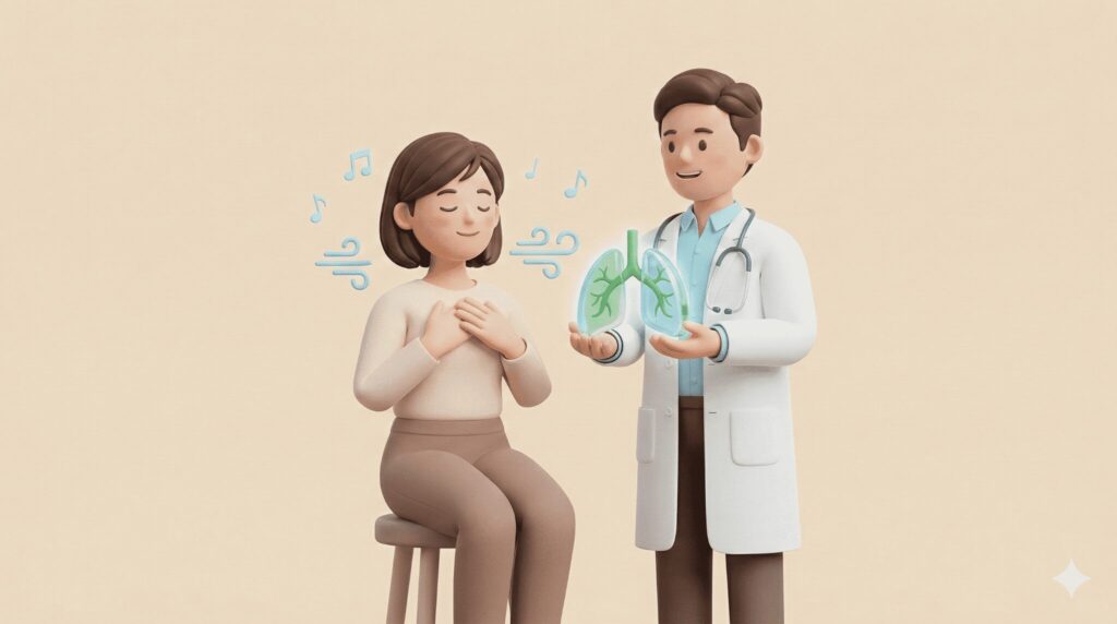 呼吸器内科とは、気管・気管支・肺などの「呼吸に関する臓器」を専門に診る診療科です。 一般内科との大きな違いは、長引く咳や喘息、COPD(慢性閉塞性肺疾患)などへの専門的な検査・治療に特化している点にあります。