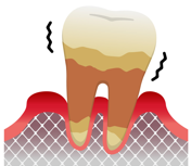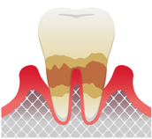 歯周病が進行すると、歯と歯茎の溝(歯周ポケット)が深くなり、複雑な形状になります。