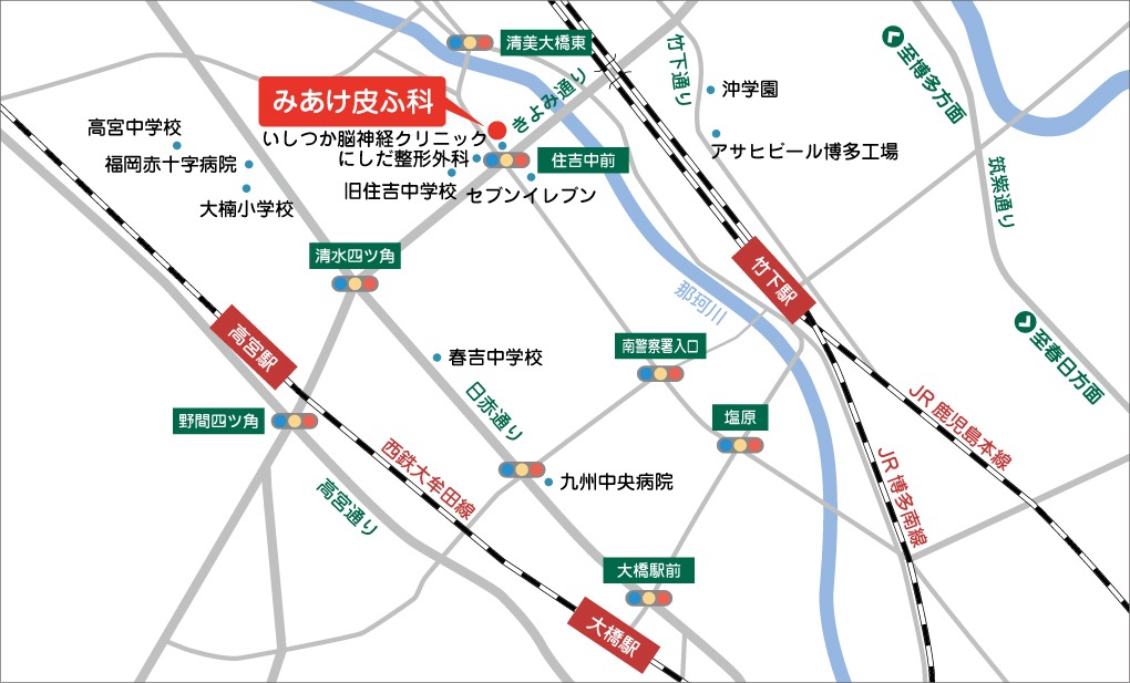 西鉄バス「清水三丁目」バス停より徒歩約2分 「西鉄大橋駅」よりバス番号60番